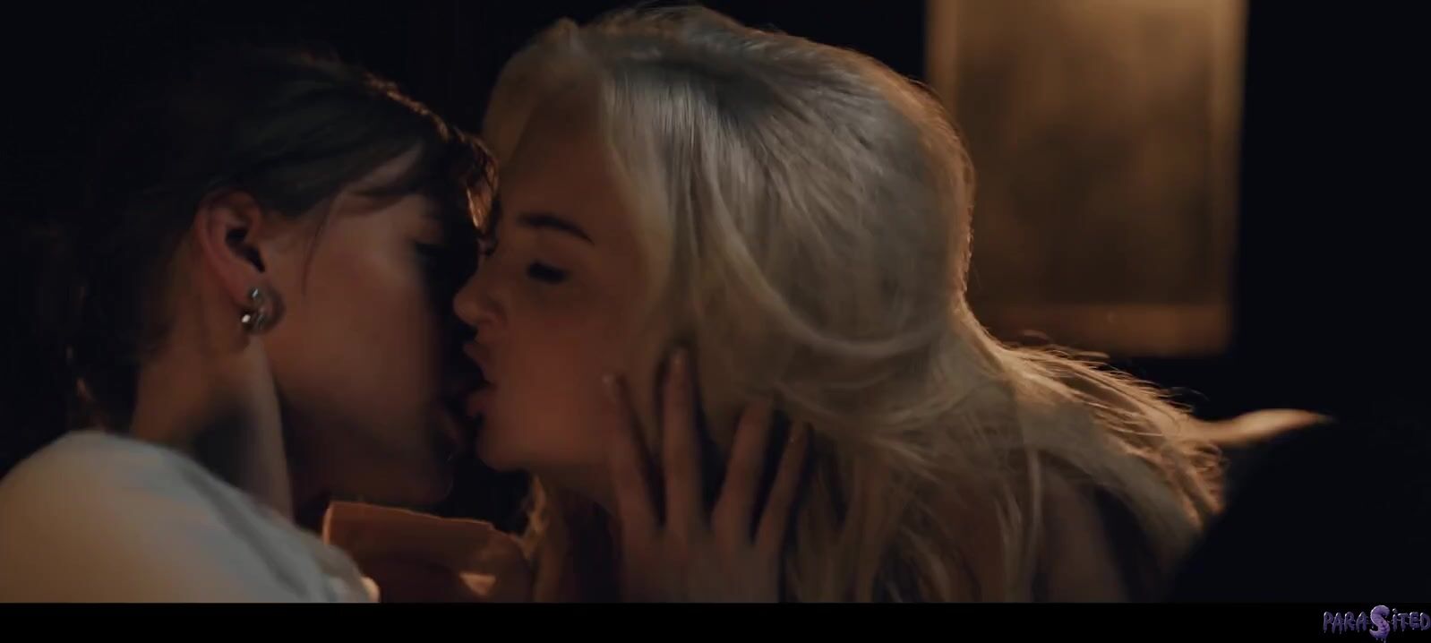 Blonde and brunette in lesbian sex scene