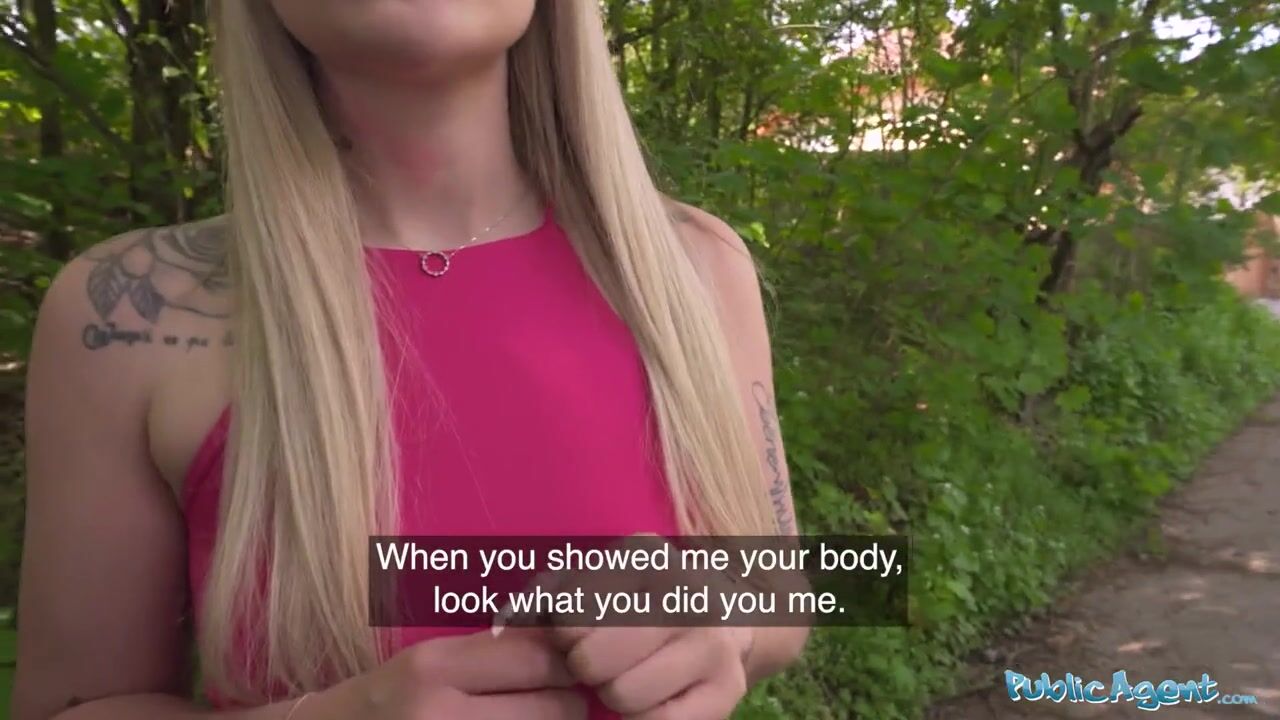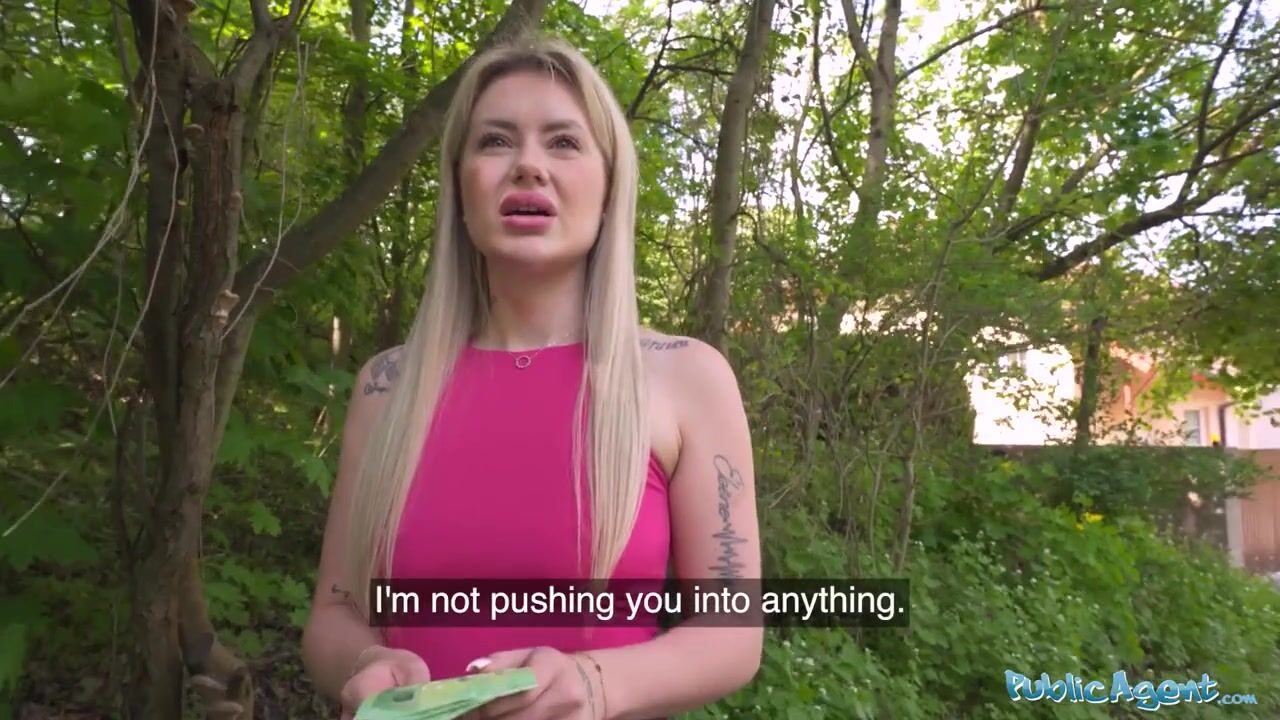 Public Agent - Sexy blonde with amazing natural tits takes off condom to enjoy herself raw