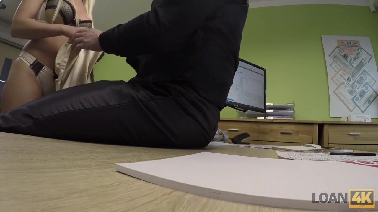 Blonde sexy secretary Blanche Bradburry wants loan and will do anything to get it